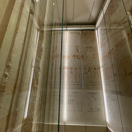 À I’intérieur du Mastaba, tombeau monumental d’Akhethétep, haut dignitaire Égyptien
