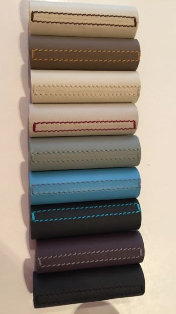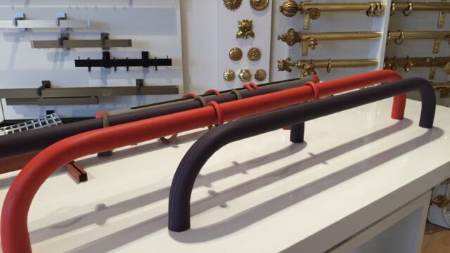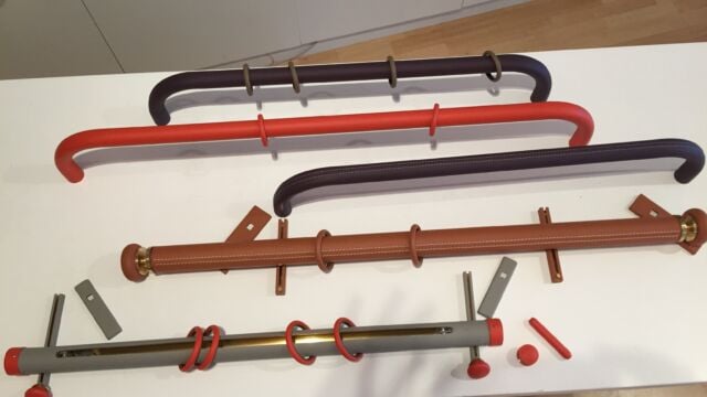 GAINAGE CUIR : Aussi luxueux que la dorure. Décor seconde peau pour tringles – droite, coudée ou cintrée – et accessoires : anneaux, embouts, cache-platine, etc. Vaste sélection de cuirs haute qualité, lisses ou grainés, traitement anti-UV et résistants à l’humidité. Finition : avec ou sans surpiqure déco, ton sur ton ou contrastée. En partenariat avec Maison Fey.
