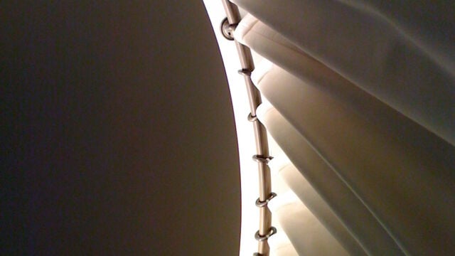 Tringle cintrée à anneaux et angle en biseau, vue de dessous