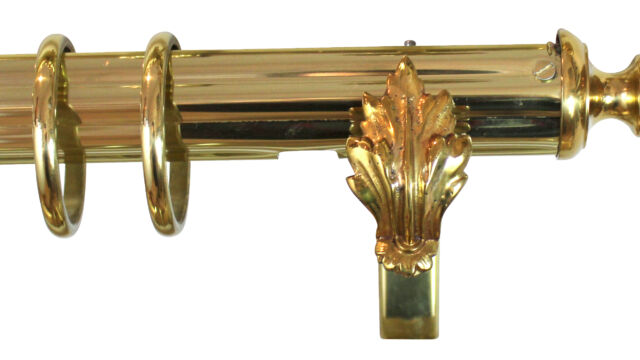 Sélection d’embouts Style Empire – début XIXème siècle — issus de notre fond, fonderie laiton massif traditionnelle au sable. Modèles « Palmette Empire 277 », «Boule Empire 703 » et « Flèche 710/1 ». Finition laiton patiné verni. Autres finition : décor électrolytique — bronze médaille, laiton vieilli, canon de fusil,… —, dorure, argenture. Tous les embouts style Empire : voir catalogue Tringles p. 90.